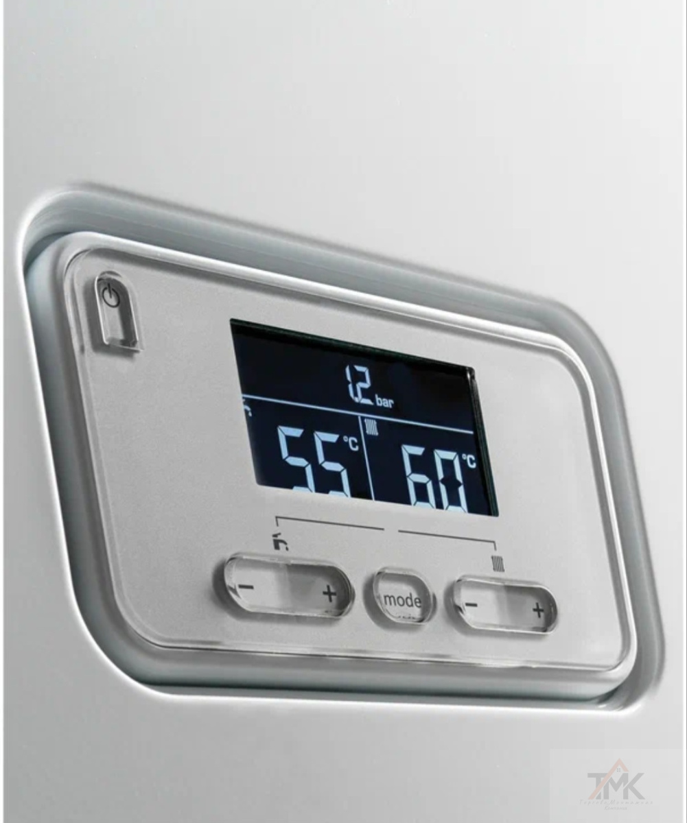 5. Простота управления: Эргономичная панель управления с интуитивно понятным ЖК-дисплеем и светодиодными индикаторами позволяет легко задавать температуру отопления и ГВС, контролировать работу котла и диагностировать неисправности (встроенная функция самодиагностики).