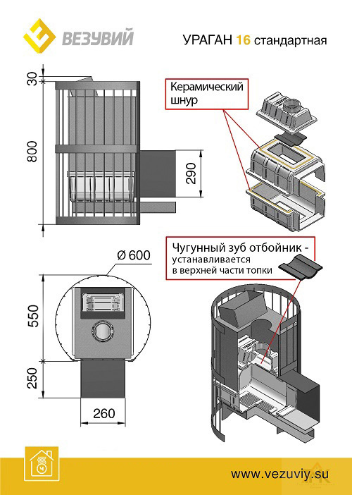 | Диаметр подключения дымохода, мм | 115 мм | |