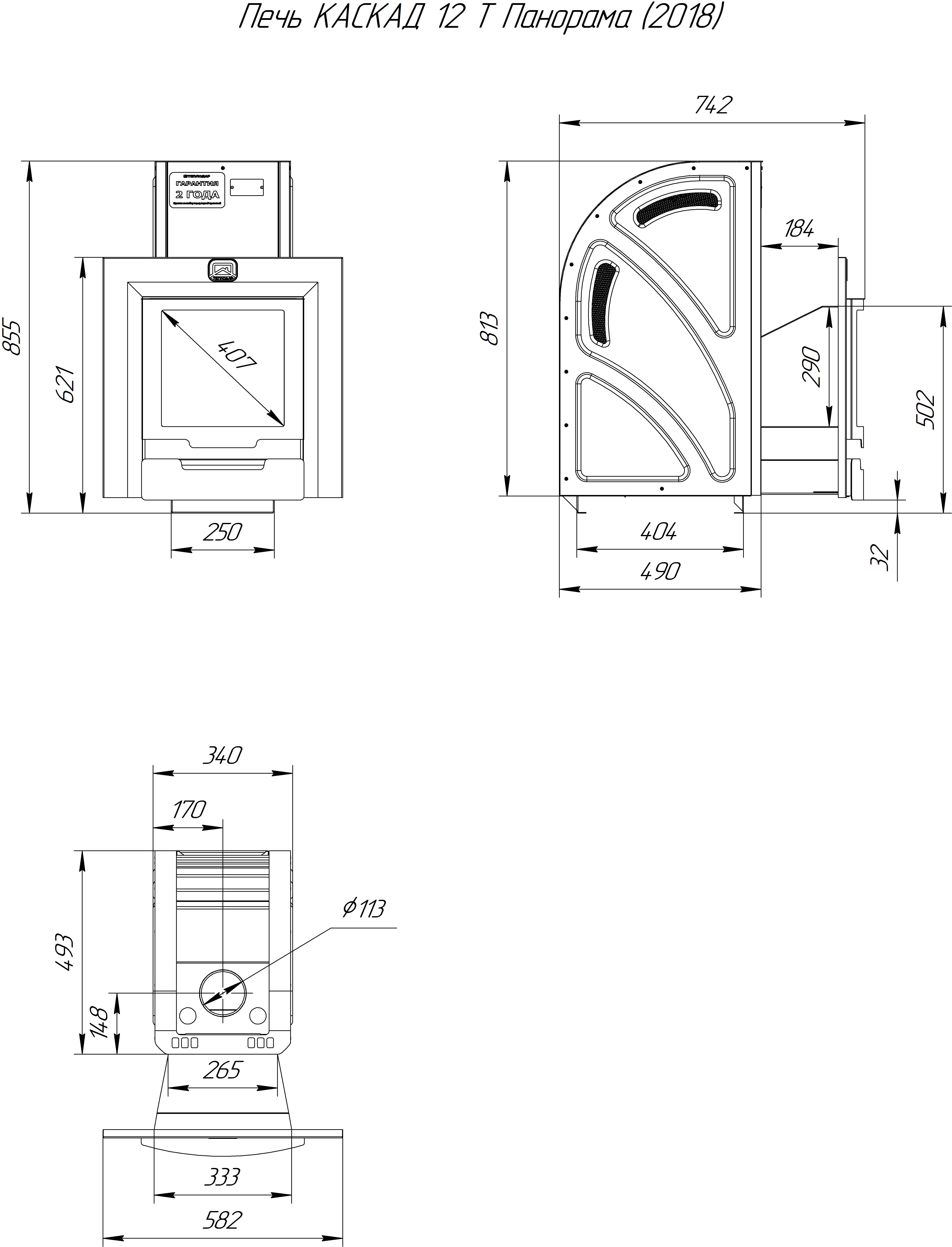 | Диаметр подключения дымохода, мм | 115 мм | |